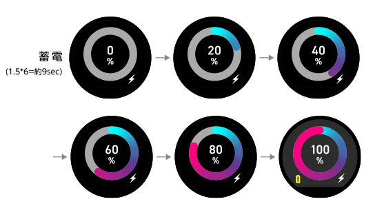 フルカラー液晶ディスプレイでバッテリーの状態を表示