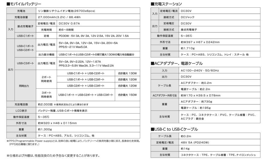 モバイルバッテリー「crevio Pro(クレビオプロ)」の仕様